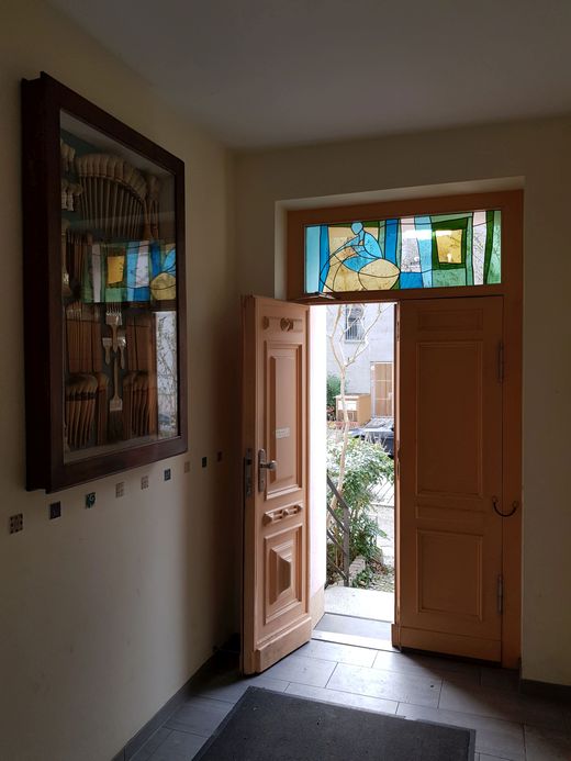 Hauseingangstür vor dem Einbau der Bleiverglasung.